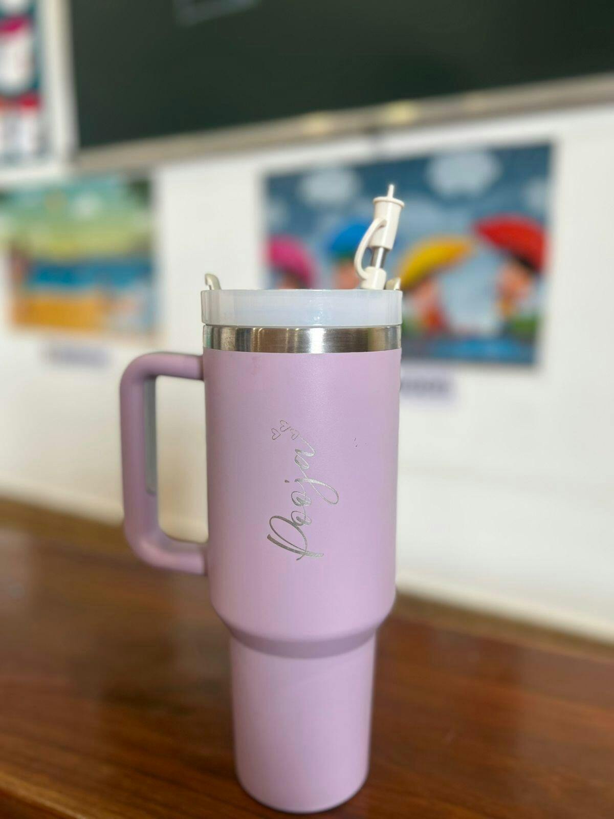 Add your name or a custom message to make it uniquely yours. Whether you’re at your desk, on campus, on the move, or unwinding at home, this tumbler is your daily hydration hype girl.